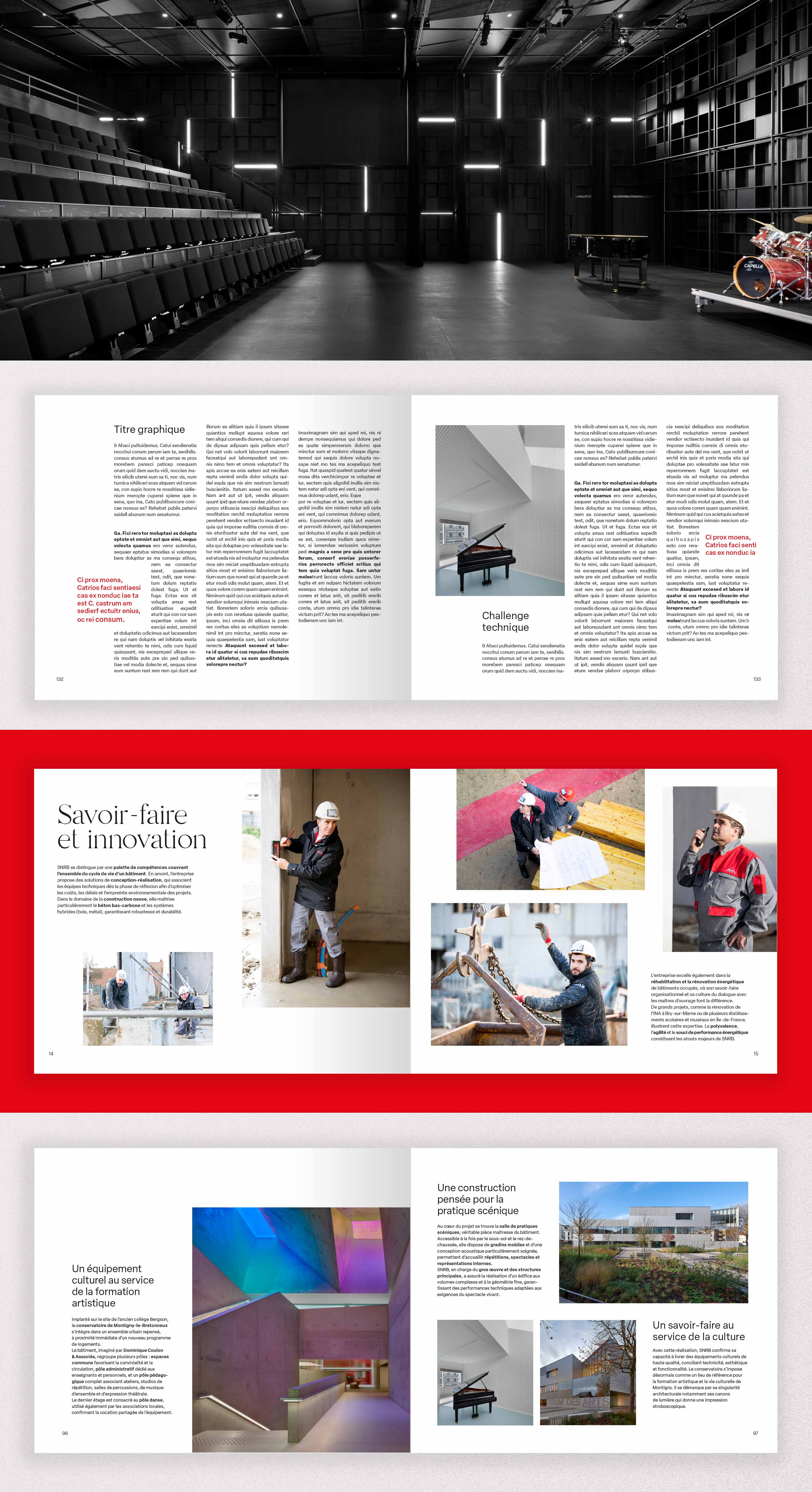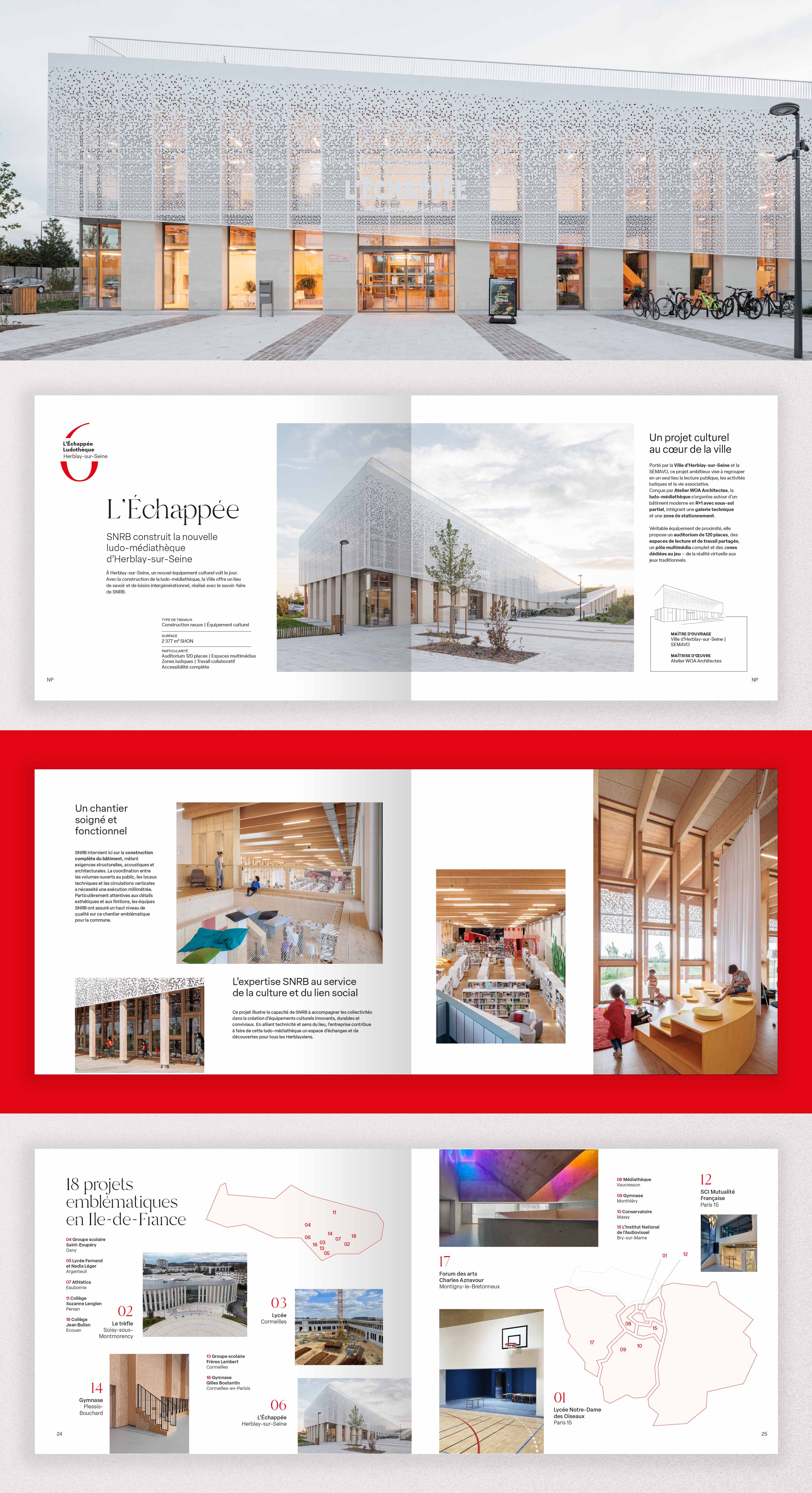 À l’occasion des 35 ans de la société SNRB, l’entreprise a choisi de concevoir un ouvrage dédié à ses partenaires. Ce livre de 102 pages retrace les grands projets menés ces dernières années, avec une création graphique complète, une sélection photographique soignée et une direction artistique dédiée. Photographies : Agence RDVA